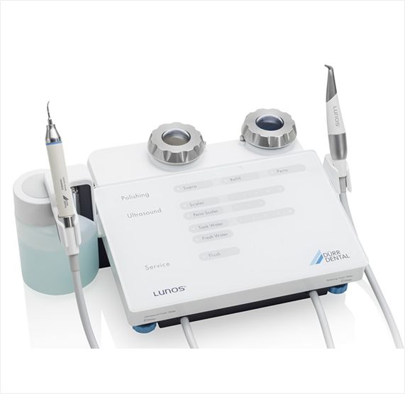 MyLunos is an advanced dental prophylaxis system by Dürr Dental designed to support comprehensive professional dental care. It combines powder jet and ultrasound technologies in one device to effectively remove biofilm, calculus, and discoloration both above and below the gumline. The system uses innovative, gentle prophy powders like trehalose-based “Gentle Clean” that protect dental tissues while delivering thorough cleaning.